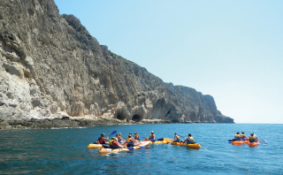 the route we will find little coves and sea caves where we enter in abseiling. A route